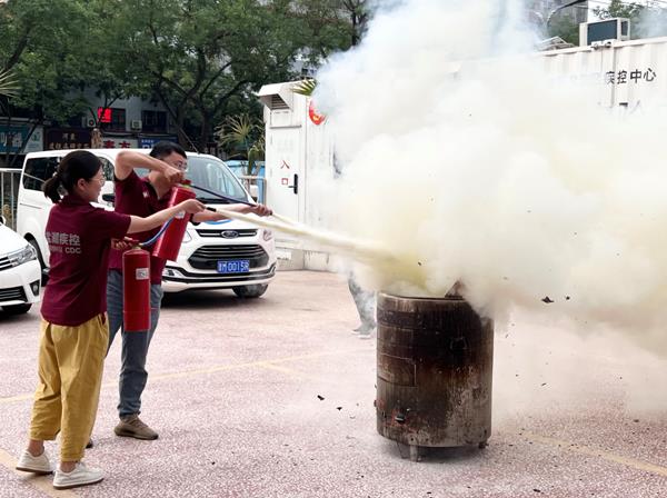 为贯彻落实习近平总书记有关安全生产的重要论述,进一步提升全体干部职工的防火救火和应急处突能力,进一步推动中心公共安全治理向事前预防转型,根据省、市、区主管部门《关于做好2023年安全生产工作的通知》文件精神和要求,2023年7月5日,盐湖区疾控中心围绕“人人讲安全,各个会应急”安全月主题,开展了安全生产知识培训暨消防应急演练活动。活动围绕培训、互动、演练和隐患排查四个环节进行,特邀区消防救援大队进行现场指导。