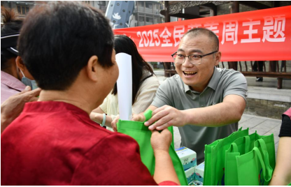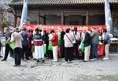 2025年5月17—23日是全民营养周,今年的主题为“吃动平衡 健康体重 全民行动”,宣传口号为:“健康中国 营养先行”。为深入推进营养健康科普宣传和人群营养干预,持续营造全民关注、重视营养,熟悉、掌握营养知识技能的良好氛围,5月23日上午,区疾控中心联合市疾控中心、朝阳社区三家单位一同在盬街开展宣传活动。市疾控中心副主任李茹、食品风险监测部部长崔耀康,区疾控中心主任关晓光、副主任李红梅、副主任王东旭、综合卫生科科长张媚、健教科科长白慧敏和现场工作人员一起为大家发放宣传资料,讲解健康知识。
